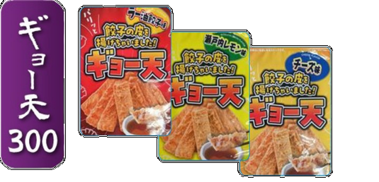| 品 名 | ギョー天 ラー油餃子味 | ギョー天 レモン味 | ギョー天 チーズ味 | ||||||||||||||||||||||||||||||||||||||||||||||